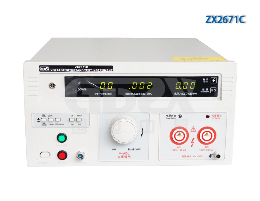 ZX2671C輸出電壓為10kV,測(cè)試電流為交流100mA,直流為20mA的交直流耐壓測(cè)試儀