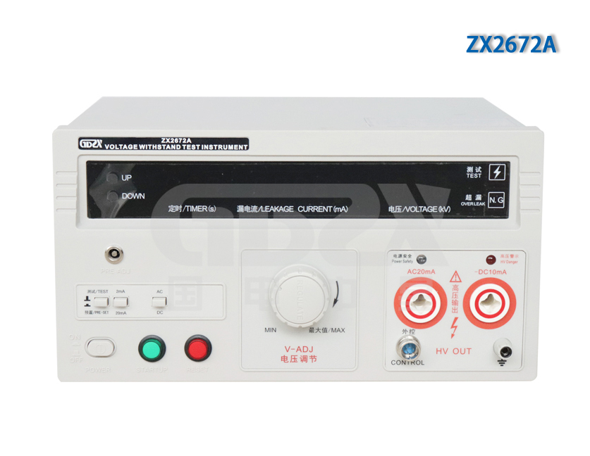 ZX2672A輸出電壓為5kV,測(cè)試電流為交流20mA,直流為10mA的交直流耐壓測(cè)試儀